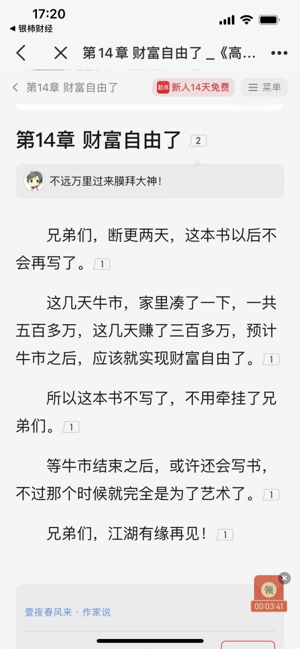 “财富自由了!”网络写手股市赚到300万直接停更