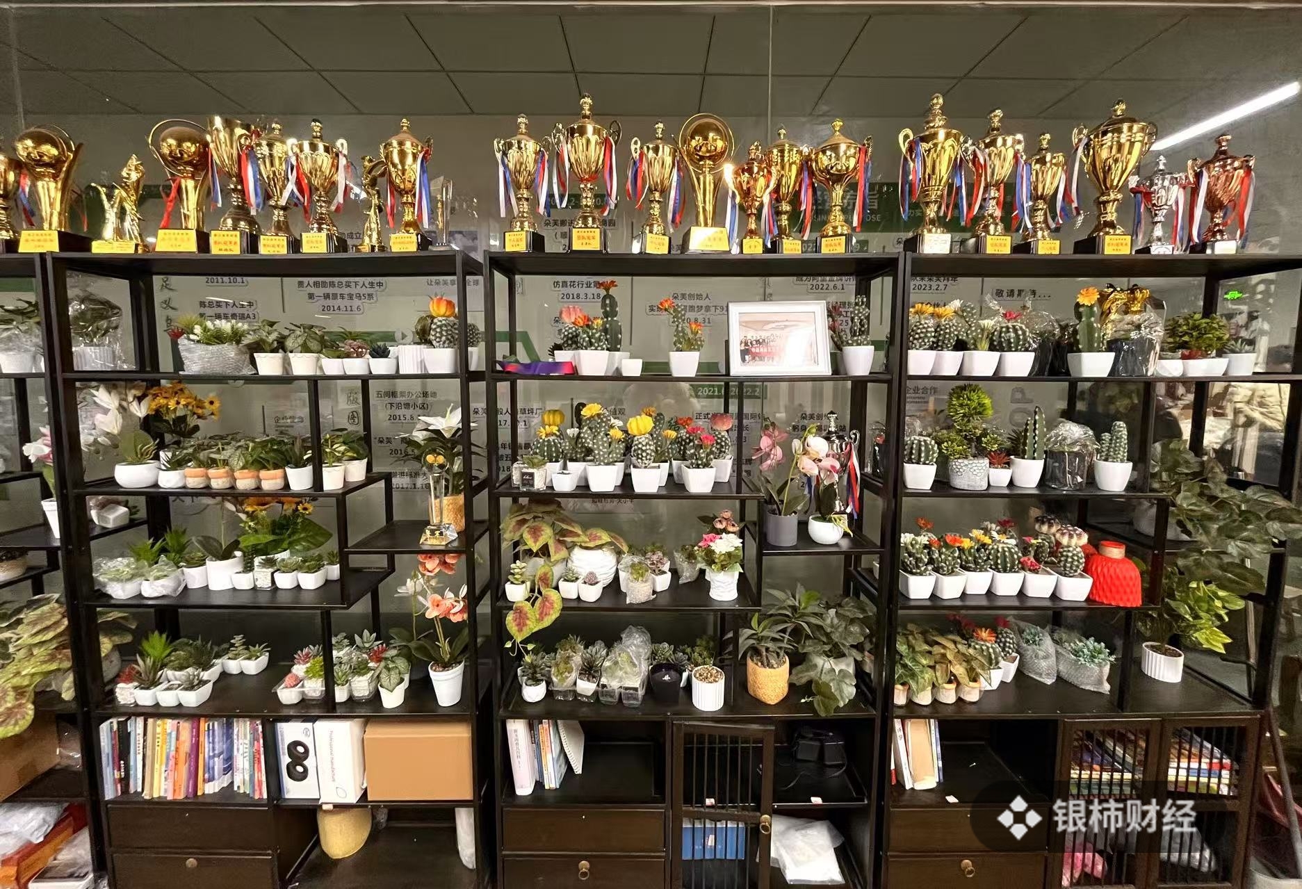 12月26日,银柿财经来到了义乌朵芙所在的办公室。在陈金宝的带领下,银柿财经见到了一间开满“鲜花”的会议室,里面摆满了数不清的仿真花、绿植样本,有桃花、玫瑰、绣球花等等,也有挂满枝头的仿真水果。