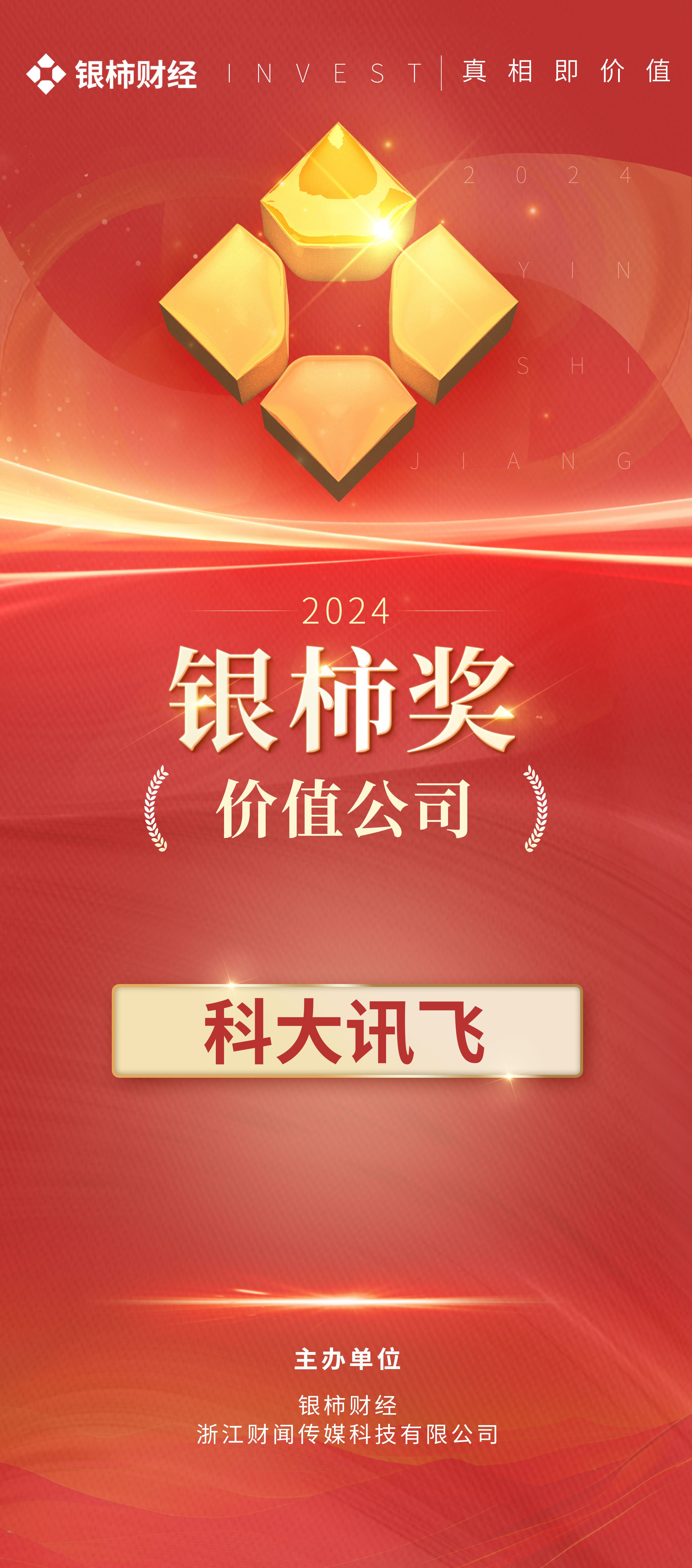 日前,2024年度银柿奖颁奖典礼在杭州圆满落幕。此次银柿奖评选中,科大讯飞(002230.SZ)凭借其卓越的核心技术、优质的产品与服务,以及出色的社会责任担当等诸多优势,从众多参选公司中脱颖而出,荣获“银柿·价值公司奖”称号。