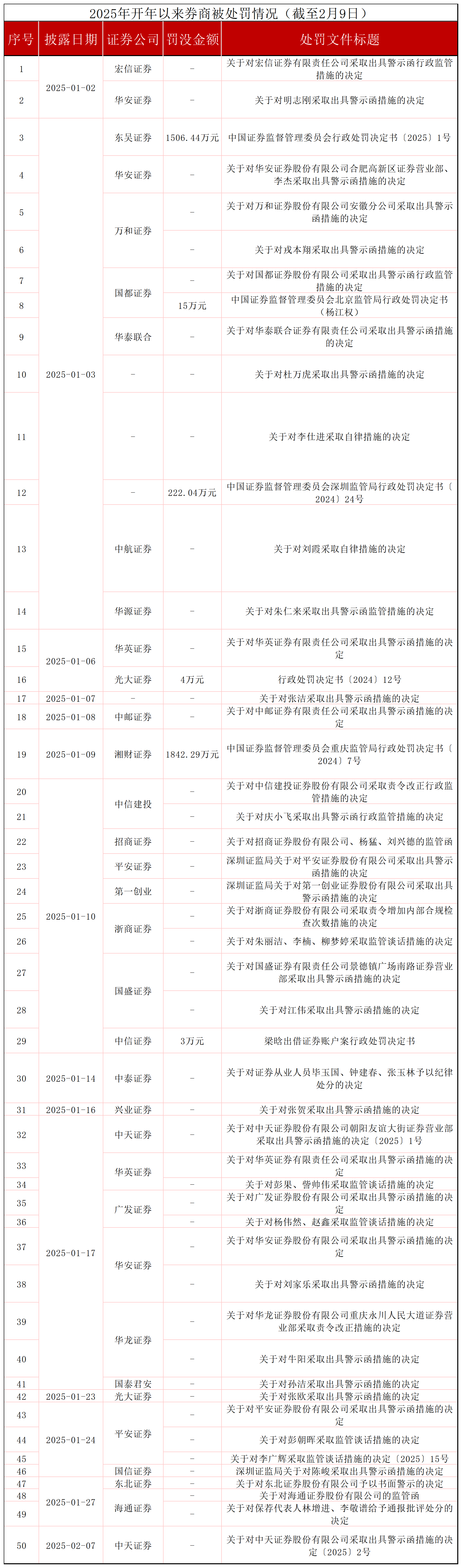 开年仅一月有余,券业已收50张罚单,被罚没总金额超三千万