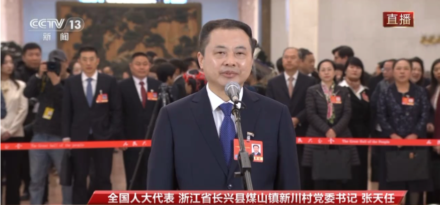 3月5日,十四届全国人大三次会议首场“代表通道”开启。全国人大代表、浙江省长兴县煤山镇新川村党委书记张天任接受记者采访。