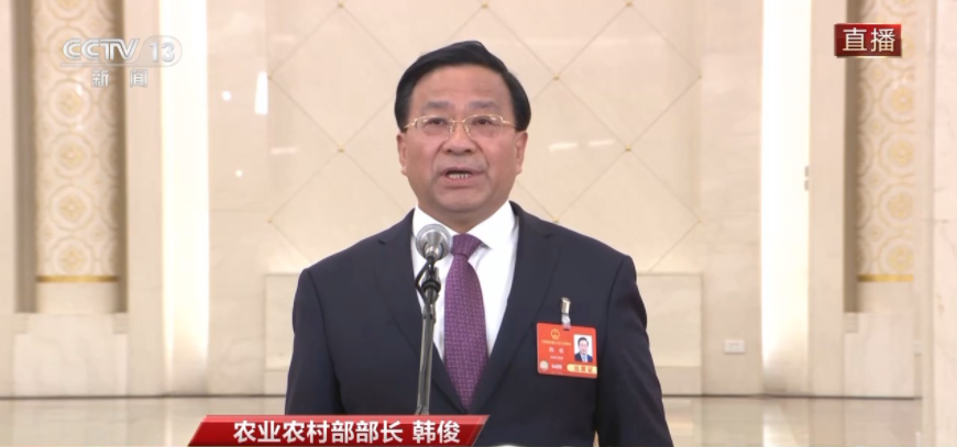 今天(3月8日),十四届全国人大三次会议第二场“部长通道”在人民大会堂举行,农业农村部部长韩俊接受记者采访。
