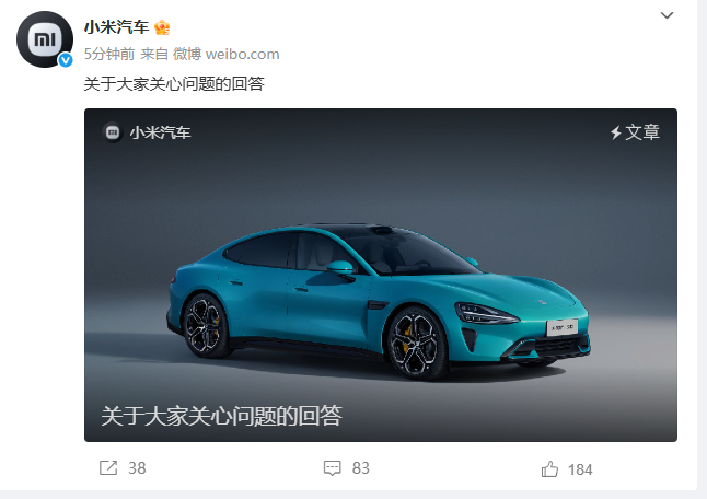 广东一辆小米SU7撞电瓶车后起火致两人死亡 官方最新回应