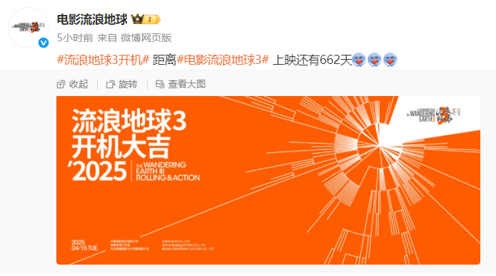 此前,《流浪地球》系列前两部作品已收获超87亿元票房。早在2023年,片方就已宣布,《流浪地球3》将定档2027年大年初一。