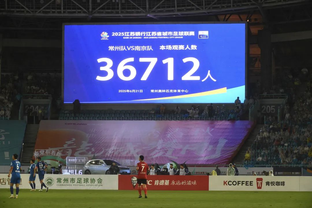 6月21日,常州队主场迎战南京队,虽然当天常州降雨,但雨势浇不灭球迷的热情,球票全部售罄,比赛单场观众突破36712人,超越此前“苏超”单场纪录,其中省外观众超过1万人。