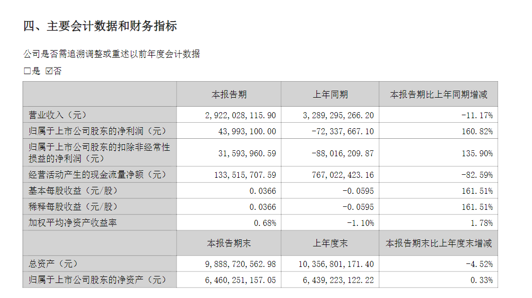 中科三环上半年净利润扭亏,同比增长160.82%