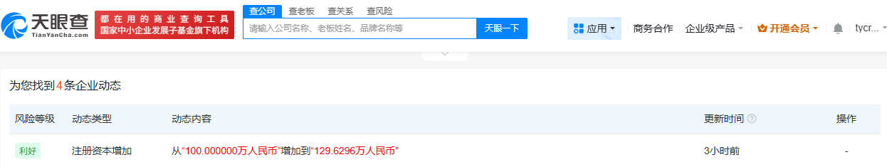烨知芯科技注册资本由100万人民币增至约129.6万人民币。