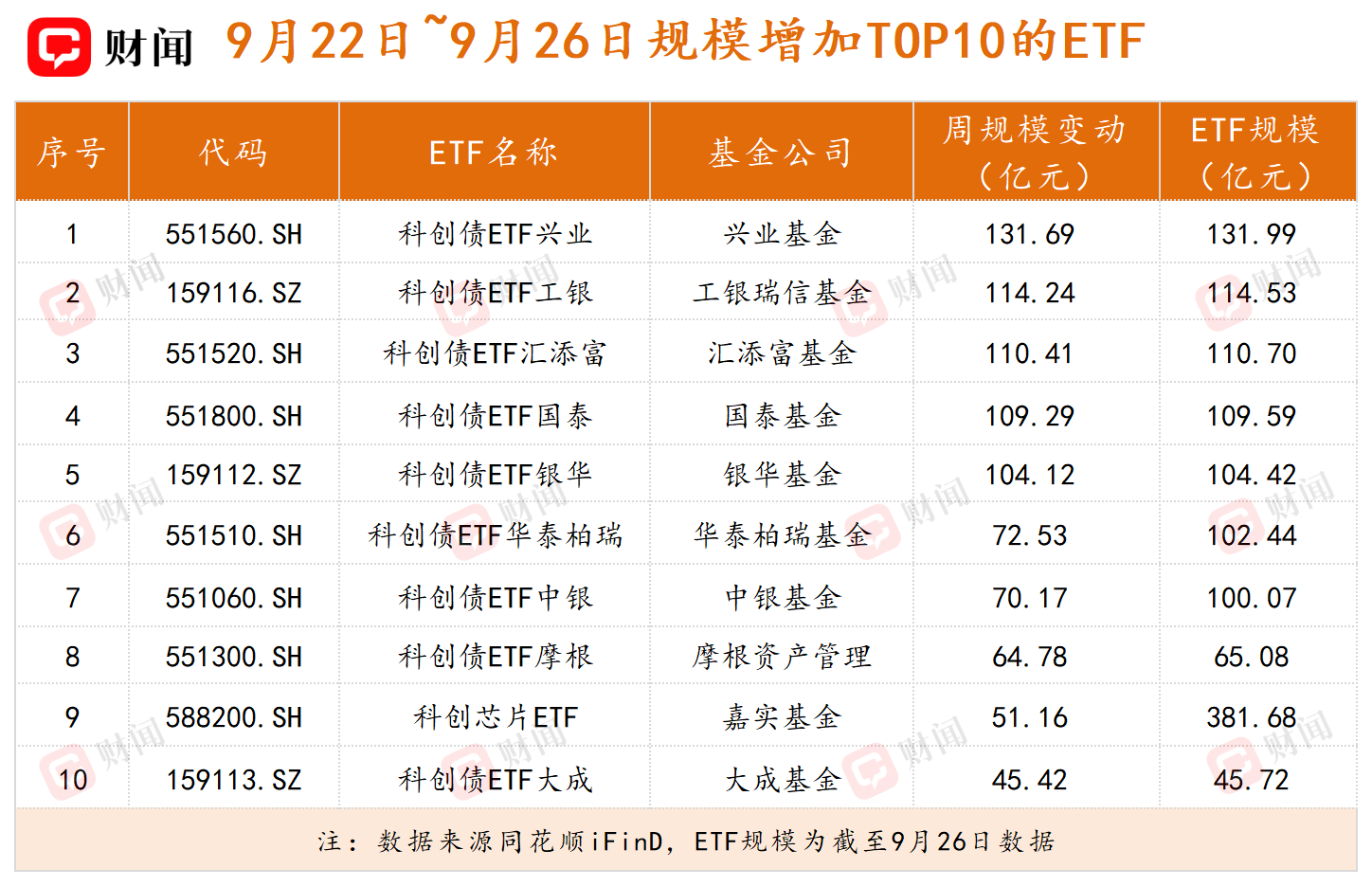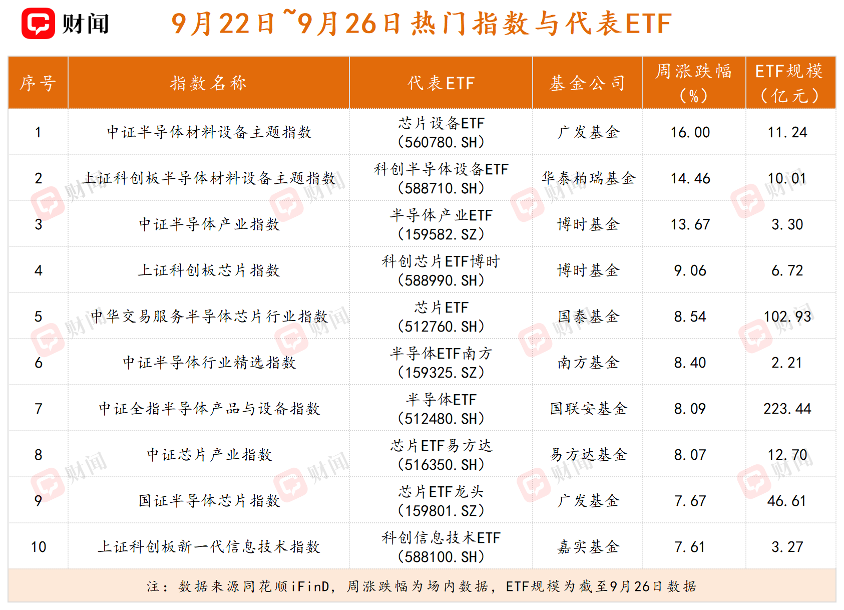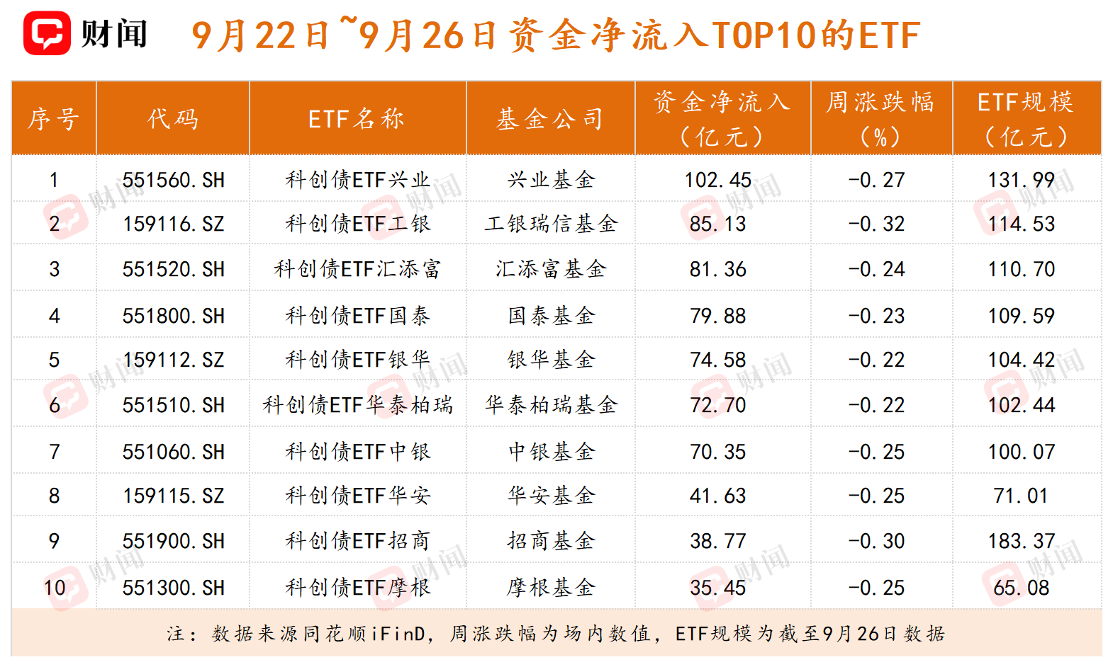 ETF周评(9.22~9.26):半导体主题ETF领涨,科创债ETF大举“吸金”