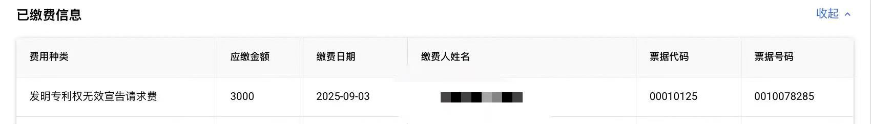 针对案涉的“一种电子狗”专利,“已缴费信息”列表中有一项“发明专利权无效宣告请求费”,缴费人正是宇树科技委托诉讼代理人所在的律所。