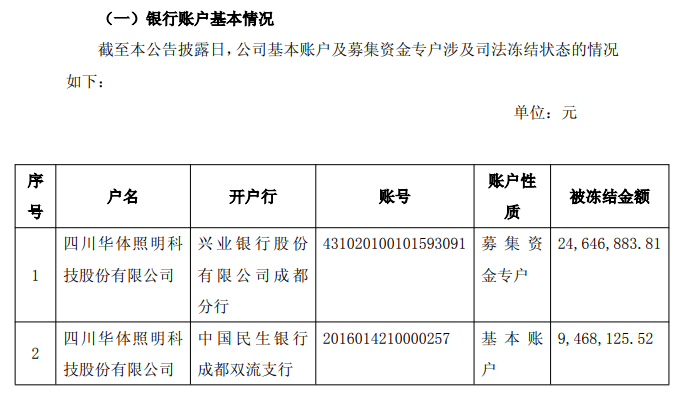 10月9日,华体科技(603679.SH)发布公告,公司的基本账户及募集资金专户被冻结。