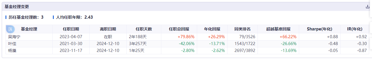 管理该产品的吴海宁自2023年4月起成为该产品的双基金经理之一,2024年12月起开始独立管理该产品。同花顺iFinD数据显示,吴海宁任职2年多来的总回报为79.86%,超越基准回报达66.22%,两项表现均远高于前两任基金经理。在基金中报里,吴海宁表示看好AI算力及应用、半导体国产化、军工等方向,同时在算力为底仓的基础上,将优先选择供需紧张和技术革新的环节。