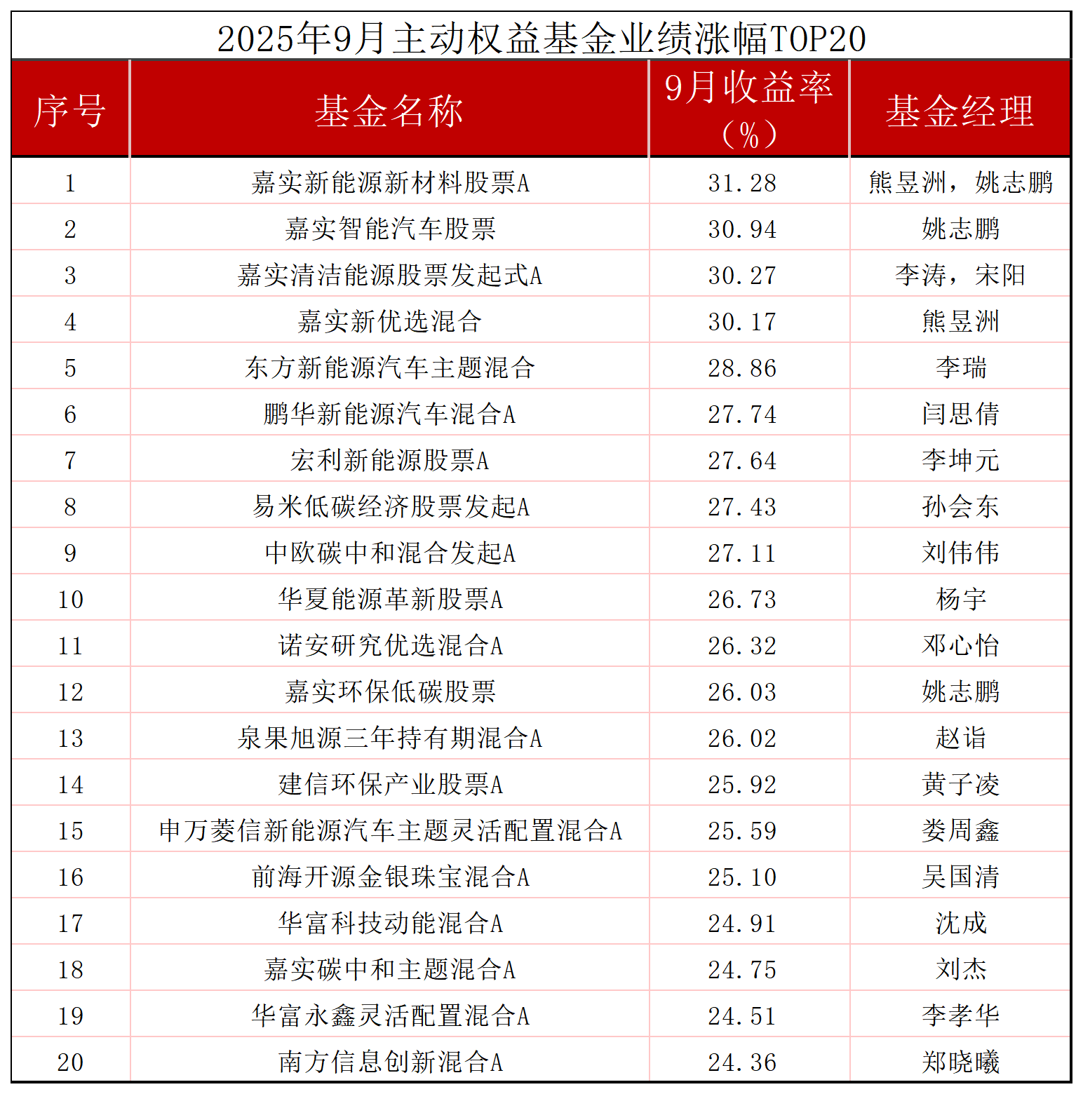 基金9月报:新能源主题基金“霸榜”,半导体成前三季度制胜关键