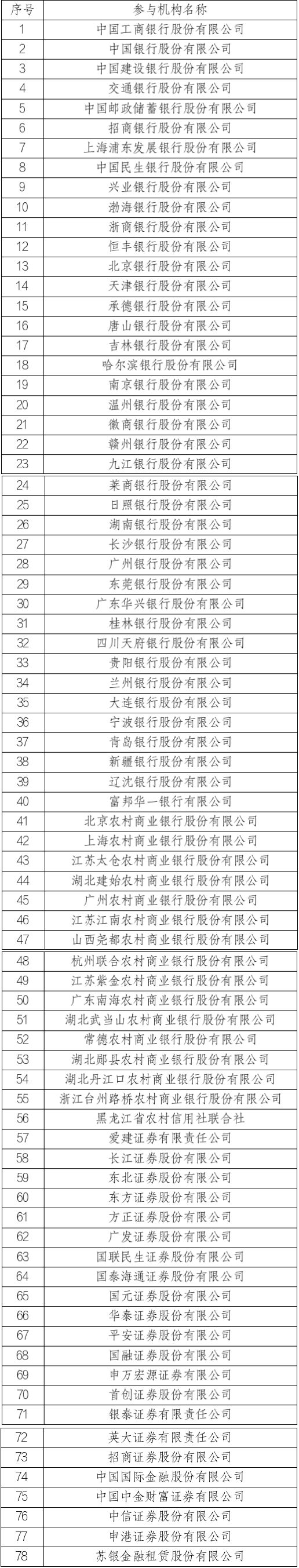 截至10月10日,集中债券借贷业务首批参与机构名单如下:
