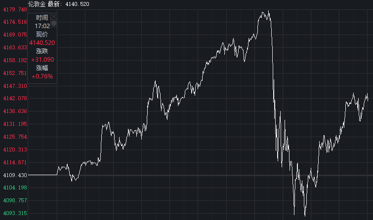 10月14日,伦敦金现货价格快速走高,午后一度触及4179.75美元/盎司的高点。随后行情急转直下,出现急速跳水,短短一小时内跌破4100美元/盎司关口,最低下探至4089.81美元/盎司,截至17:00已反弹至4140美元附近。