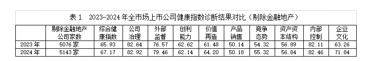 《中国上市公司健康指数报告(2025)》此次共对2024年度5363家公司开展健康诊断,其中包含银行(42家)、非银金融(83家)、房地产(95家)等220家特殊行业公司。具体来看,剔除上述特殊行业后,全市场5143家上市公司的综合健康指数平均值为67.17,较2023年的65.93实现小幅提升;从企业分布来看,高于该平均水平的上市公司有2676家,占总量的52.03%(2023年度为52.38%),低于平均水平的则有2467家,占比47.97%,整体呈现“略超半数达标”的格局。