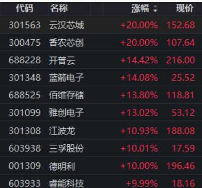 10月16日,在市场整体调整行情下,存储芯片板块个股的暴涨引人瞩目。盘中一度超10只板块个股出现涨停,次新股云汉芯城(301563.SZ)20cm涨停封板,香农芯创(300475.SZ)盘中触及20cm涨停板,股价最高达到107.64元,创上市以来新高。