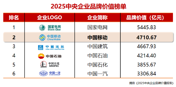 2025央企品牌价值榜单出炉!国家电网位列第一,中国移动紧随其后