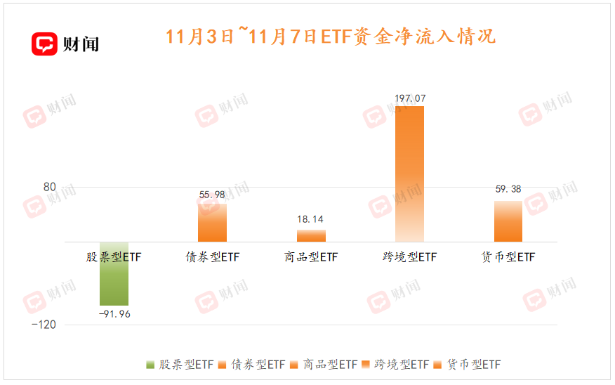 在市场整体震荡的情形下,股票型ETF成为上周唯一资金净流出的ETF类型,而形成鲜明对比的是,跨境型ETF却吸引了高达197.07亿元的资金流入。
