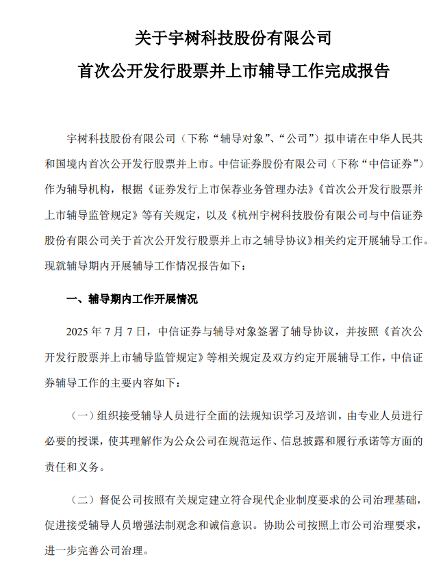 报告显示,辅导过程中,中信证券针对宇树科技的募集资金投资项目规划和公司治理及规范情况存在的问题进行了辅导及改进。