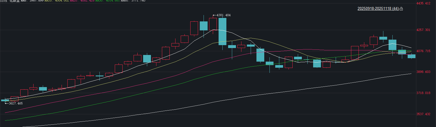 在10月20日国际金价创下历史新高后,市场出现快速调整,10月27日,伦敦金现货价格跌破4000美元/盎司,但后市反弹强劲。11月13日,伦敦金现货价最高上涨至4200美元/盎司以上。但自11月13日以来,受美国政府结束“停摆”及美联储多位官员密集释放“鹰派”信号等因素影响,黄金价格又一次开启回调模式。截至11月18日16时,本轮调整已累计下跌逾4%;若从10月20日创下的历史高点算起,国际金价累计跌幅已超过5%。