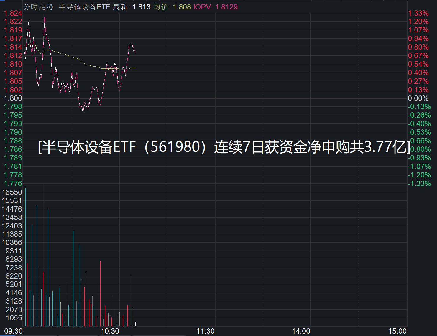 半导体设备ETF(561980)早盘高开0.94%、目前涨0.72%,最近7个交易日获得资金连续净申购共3.77亿元,年内份额增108.8%,显示资金或在博弈板块中长期成长空间。