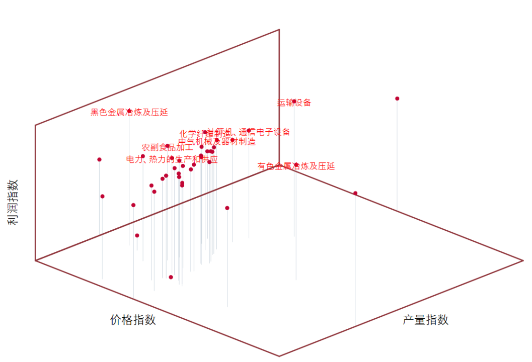 首先是高技术行业和一般行业之间的绩效分化。从全年来看,规模以上高技术产业工业增加值同比或超过9%,亮点突出。其中,高技术制造业中的3D打印设备、新能源汽车等产量同比增长超过或接近20%,而工业企业整体的增加值同比或为6%左右。目前高技术制造业增加值占比为16.3%,这意味着高技术制造业之外的增加值增速约为5.3%,这和9%的总体增速还是存在显著差异的,而高技术行业和一般行业的利润差距表现可能更大。