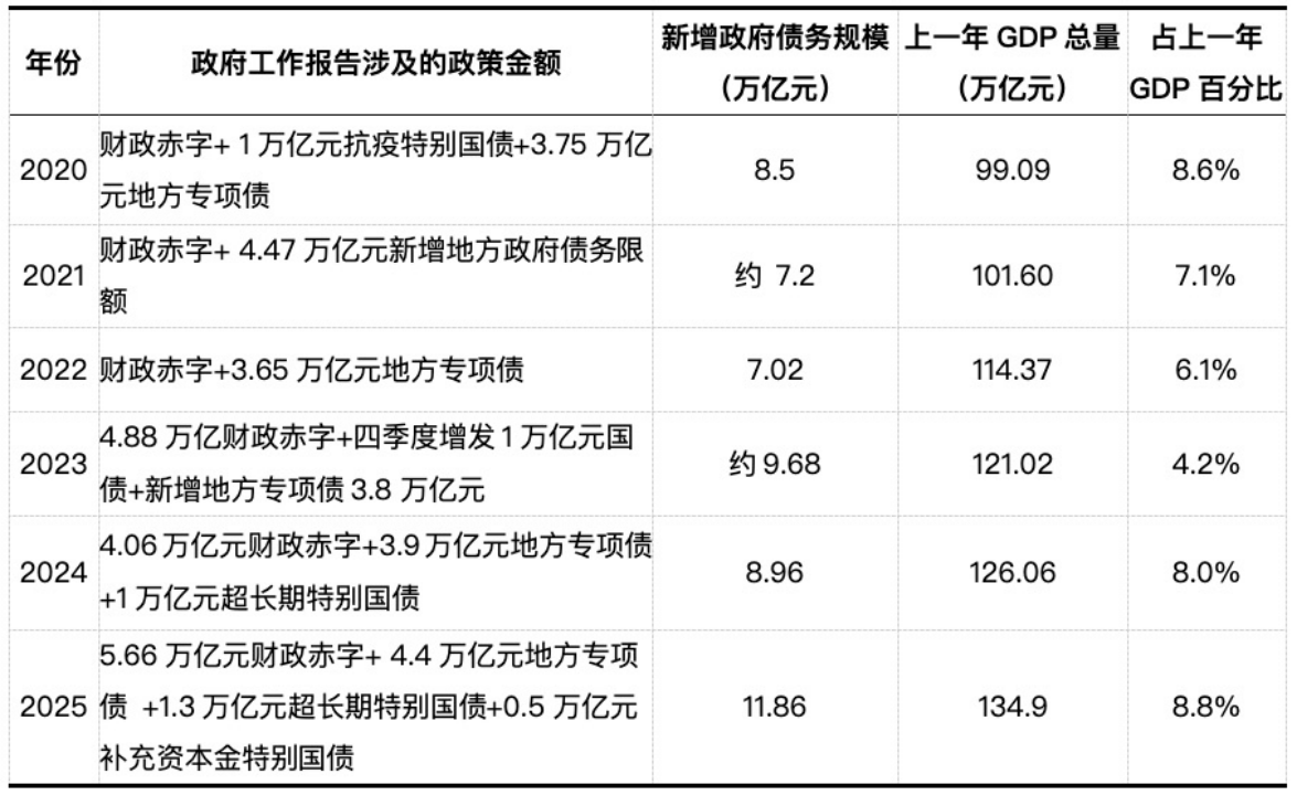 2024年的中央经济工作会议对于2025年的政策操作定调较为积极,比如提出“更加积极的财政政策+适度宽松的货币政策”这一罕见的政策组合定调。2025年全国两会的政府工作报告确定的赤字率首次达到4%,并发行超长期特别国债1.3万亿、特别国债0.5万亿,地方政府专项债安排4.4万亿,合计的新增政府债务规模创下11.86万亿的新高。货币政策则为财政发力提供适度宽松和低利率的货币环境,提供流动性支持。