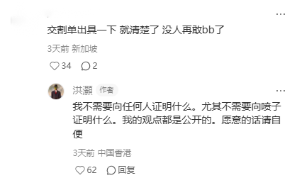 11月30日,洪灏曾在小红书平台表示“不需要向任何人证明”。
