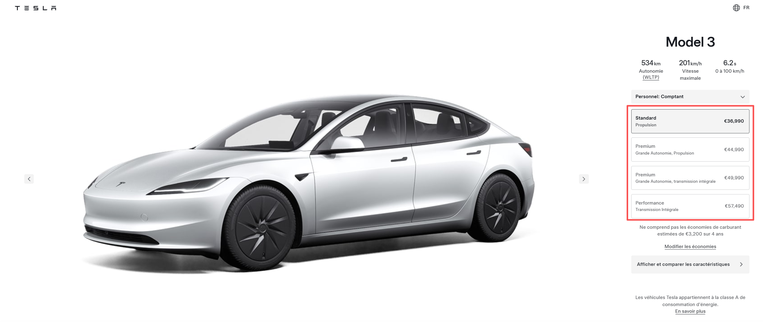 特斯拉官网显示,已开始在欧洲销售其更低价位的Model 3车型,标准版Model 3在荷兰和法国的售价为36990欧元,预计2026年1月起发货。