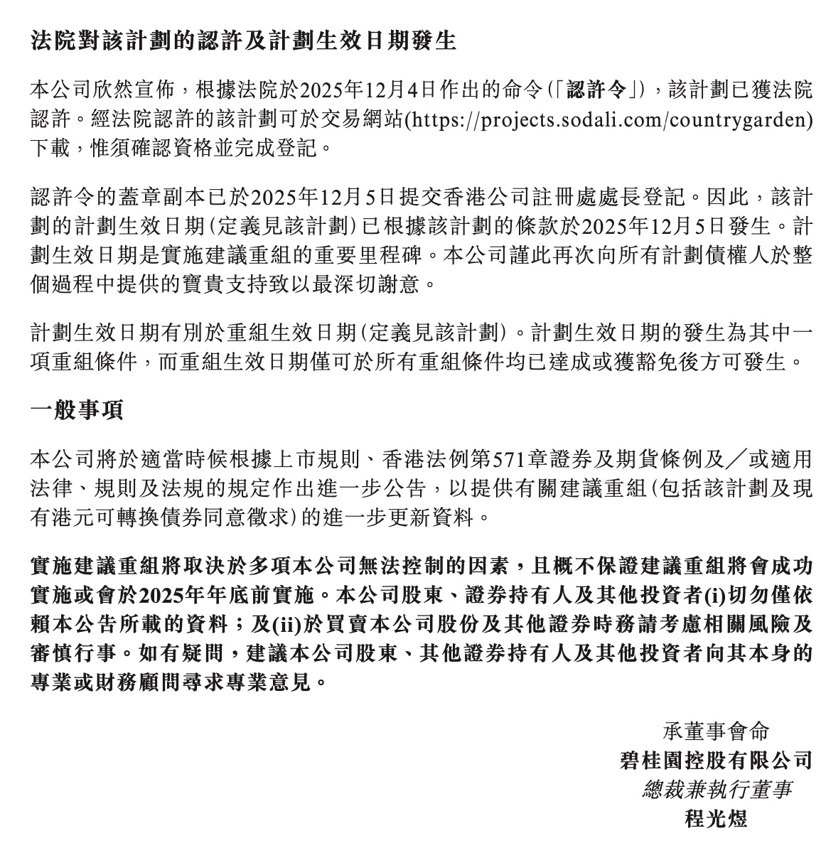 12月5日,碧桂园在港交所公告,根据法院于2025年12月4日作出的命令,境外债务重组计划已获法院认许。