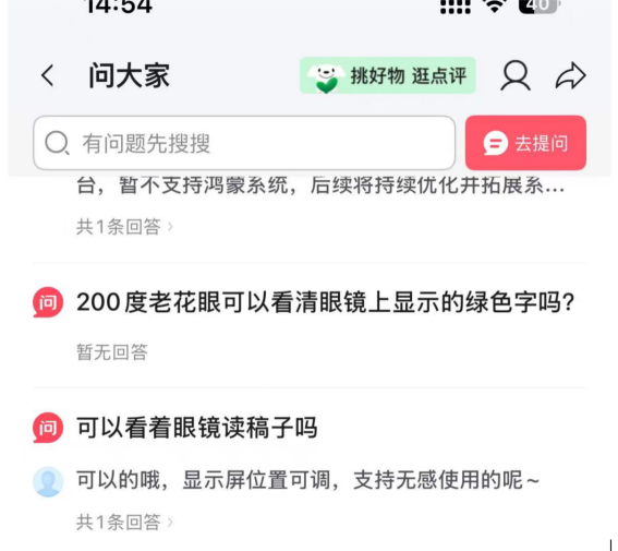 在京东的眼镜介绍页面中,财闻发现,对智能眼镜的关注除了拍摄之外,用户正在关注更多智能功能。比如是否可以看书,是否可以帮忙打牌……
