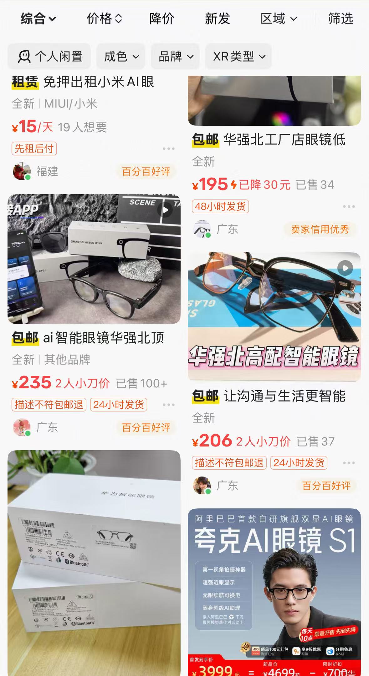 他们都指出,自从夸克眼镜推出后,其他品牌的智能眼镜目前基本上就不太卖得动了。