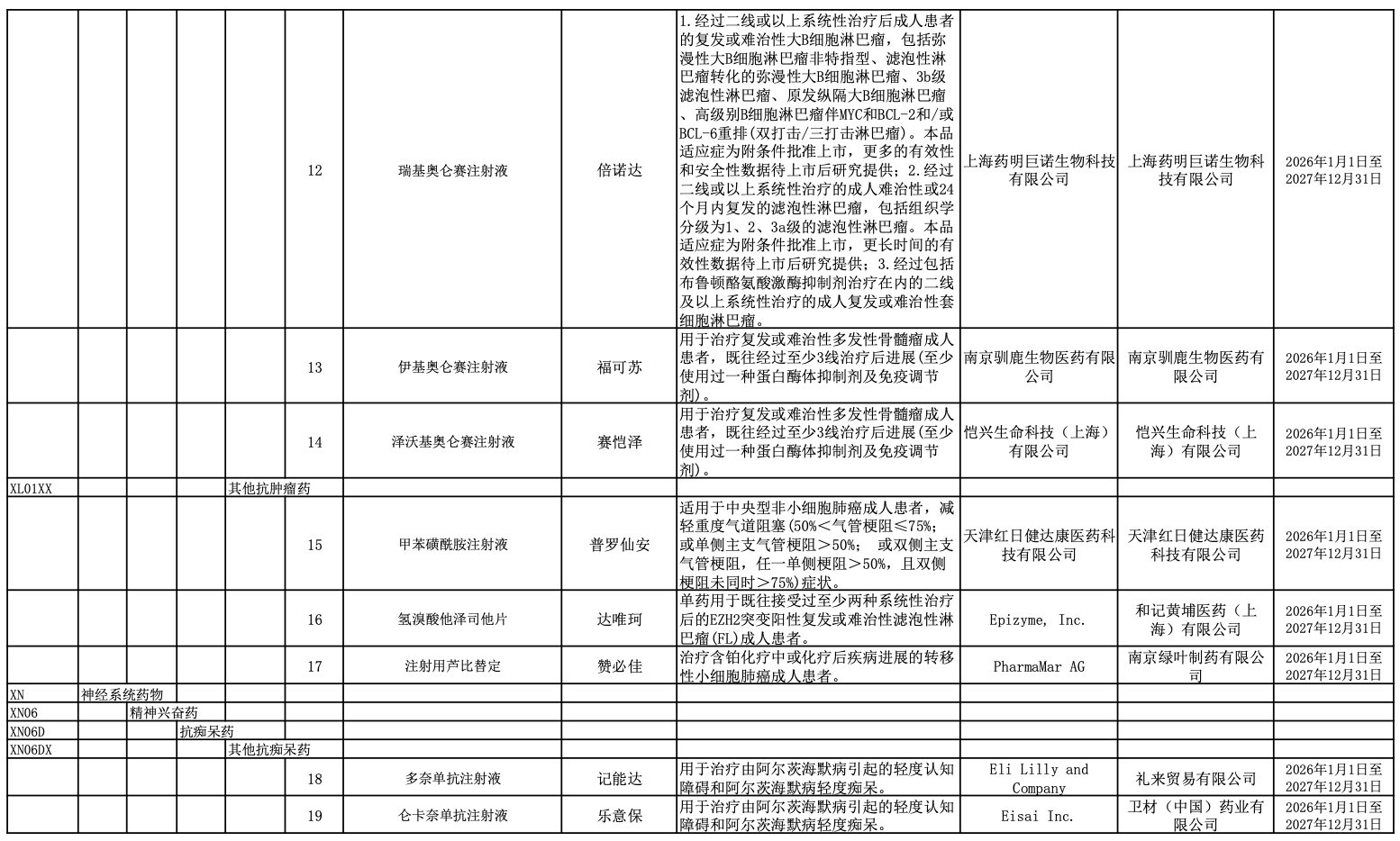 附19个药品详细目录: