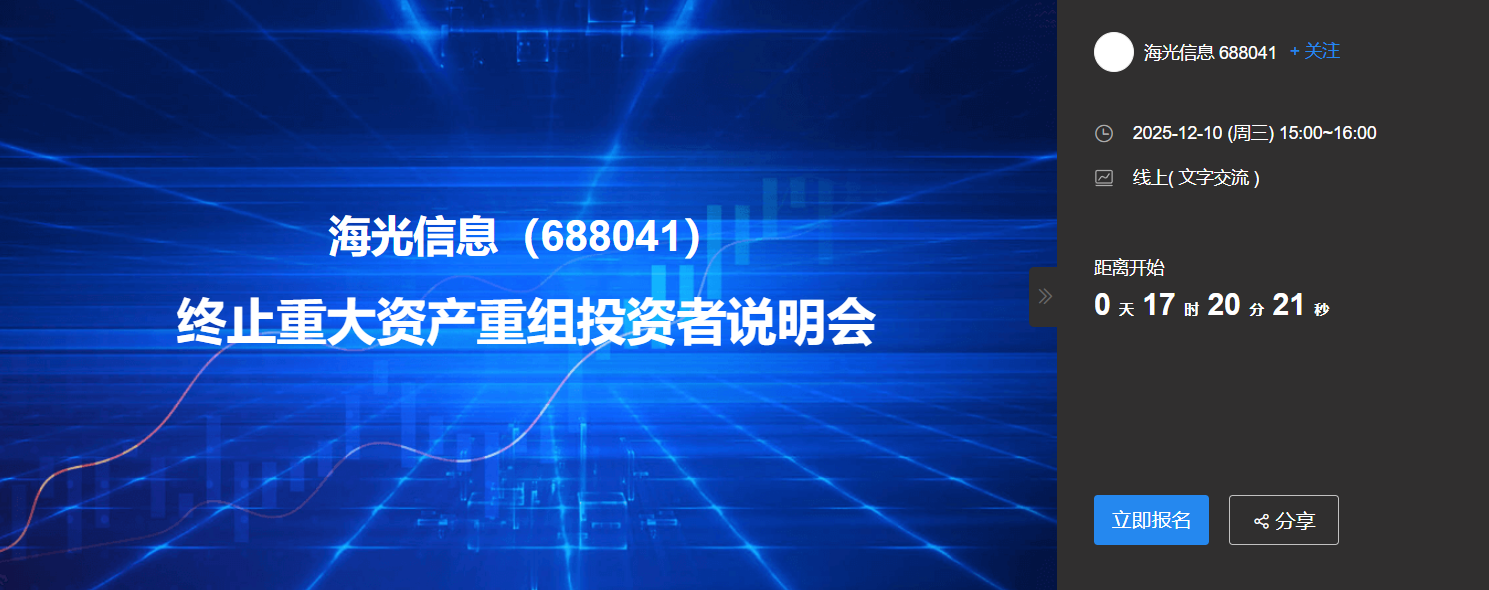 公司表示,将于2025年12月10日(星期三)15:00-16:00召开终止重大资产重组投资者说明会,投资者可在2025年12月10日(星期三)16:00前通过访问网址https://eseb.cn/1tRcid6Infy在线参与本次说明会,公司将及时回答投资者的提问。