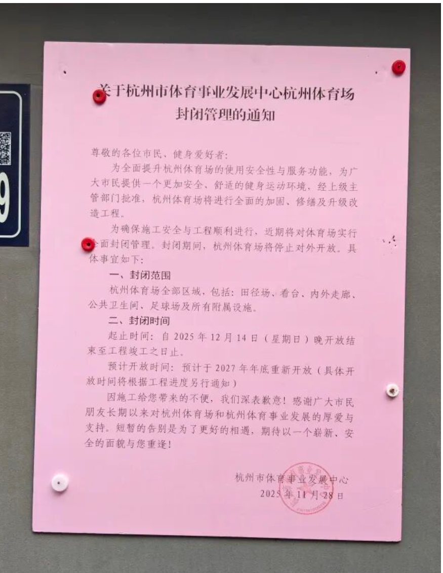 位于杭州市体育场路169号的杭州体育场,这座近百岁的体育场将于12月15日起暂别市民,开启为期两年的整体装修和改造提升工程,预计在2027年年底重新回归。体育场的改造计划从去年开始就已经官宣,主要针对设施老化和场地破旧等问题进行全面升级。