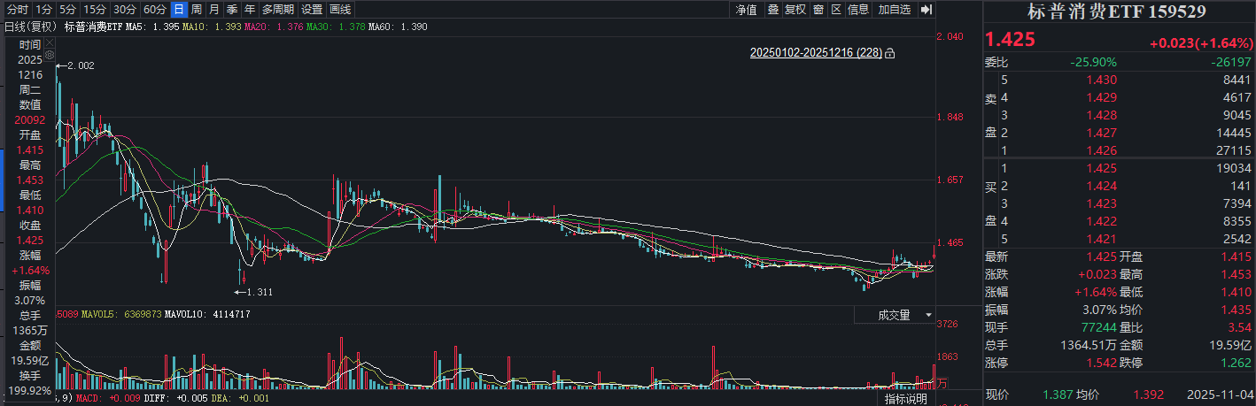 例如,2025年初QDII基金曾出现一波溢价潮:标普消费ETF(159529)在1月23日的溢价率一度超过50%,而截至12月16日,其溢价率已回落至7.55%,在此期间,该ETF价格跌幅达25.24%。