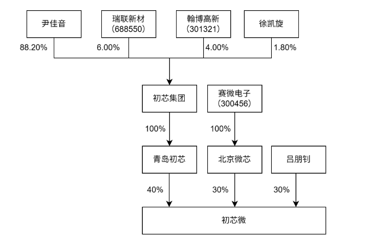 此次拟入主的初芯微、青岛初芯的背景及背后资本尤为值得关注。据披露,初芯微背后首先是尹佳音和其控制的初芯共创控股集团有限公司(以下简称“初芯集团”)。