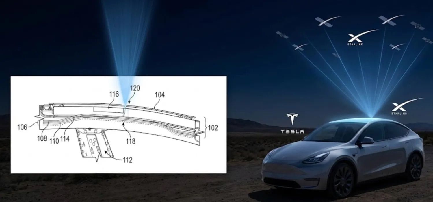 特斯拉提交新专利,计划将星链卫星接收器集成至车辆中,以解决蜂窝网络覆盖局限问题。
