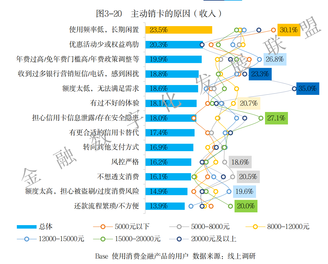 那谁还在用信用卡?据《消费金融数字化转型主题调研报告2025》数据,信用卡消费支付行为信息显示,信用卡月均交易10.4笔、5326元,中年及高收入是主客群。关于主动注销信用卡的原因,合计31%的人提及不想透支消费或者担心过度消费。