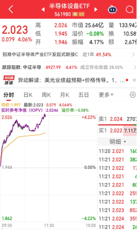 近期存储芯片持续活跃,本周再度高开拉升,珂玛科技开盘涨停。上游半导体设备需求受益表现强势,半导体设备ETF(561980)飙涨超4%,成交额迅速放大到2.67亿元。