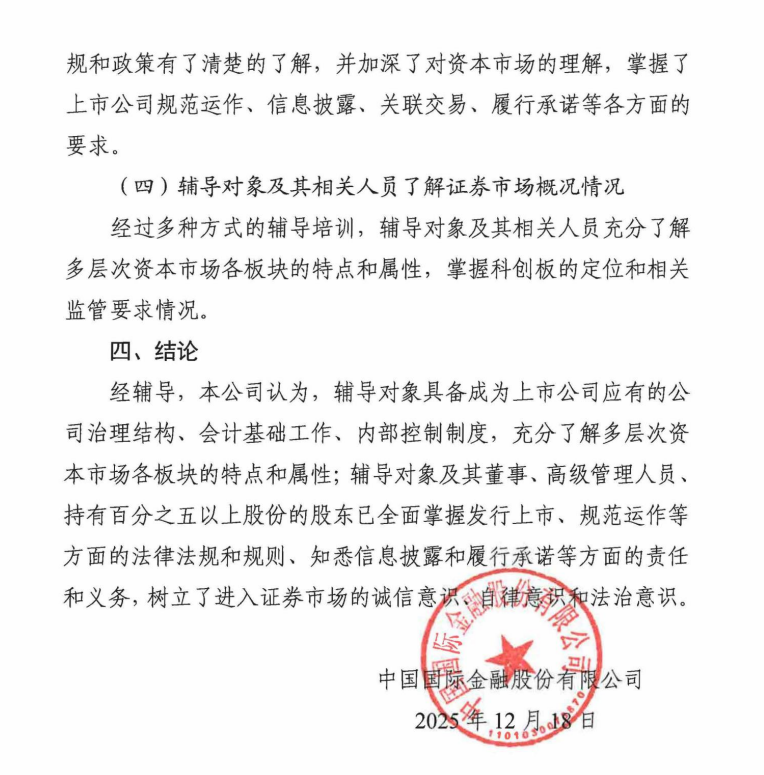 公告显示,中金公司于2025年7月25日向北京证监局提交了关于辅导对象首次公开发行股票并上市的辅导备案申请,并于2025年7月29日获得辅导备案受理。