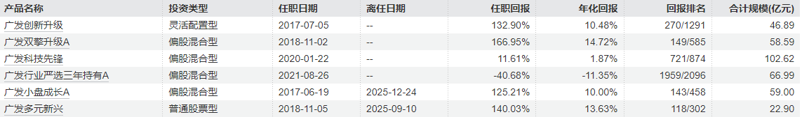 除广发小盘成长外,刘格菘还于2025年9月10日卸任广发多元新兴的基金经理。至此,其年内共卸任两只产品,目前在管基金数量为4只,合计管理规模为275.10亿元(依据三季报数据计算)。