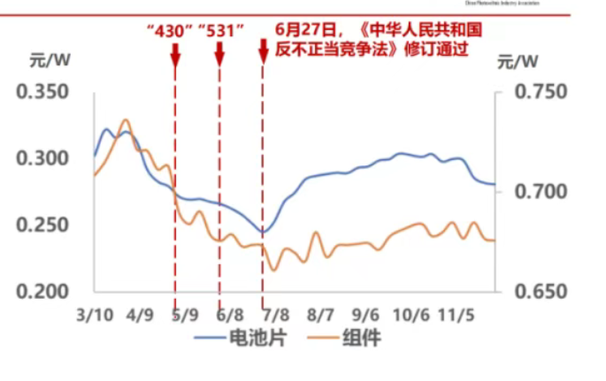 “组件价格是由下游电站和开发商决定的。”谭佑儒对财闻分析,在买方市场里,组件需求不足但是供应充足,“回顾今年各个环节价格,任由上游环节价格变化,组件价格一直都是比较稳定的。”
