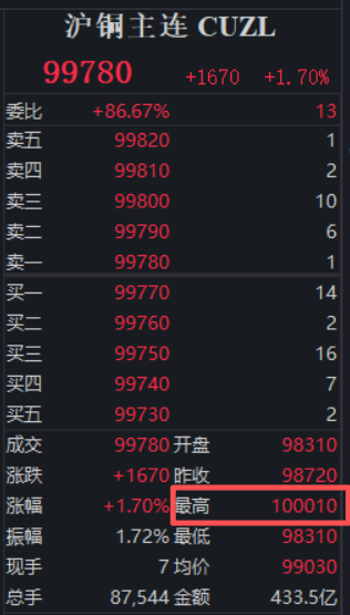 上期所沪铜期货主力合约站上十万关口 财闻 董凯毅 2025-12-26 22:32:04 12月26日期货夜盘,上期所沪铜期货主力合约站上十万关口,涨超1.8%。 12月26日期货夜盘,上期所沪铜期货主力合约站上十万关口,涨超1.8%。
