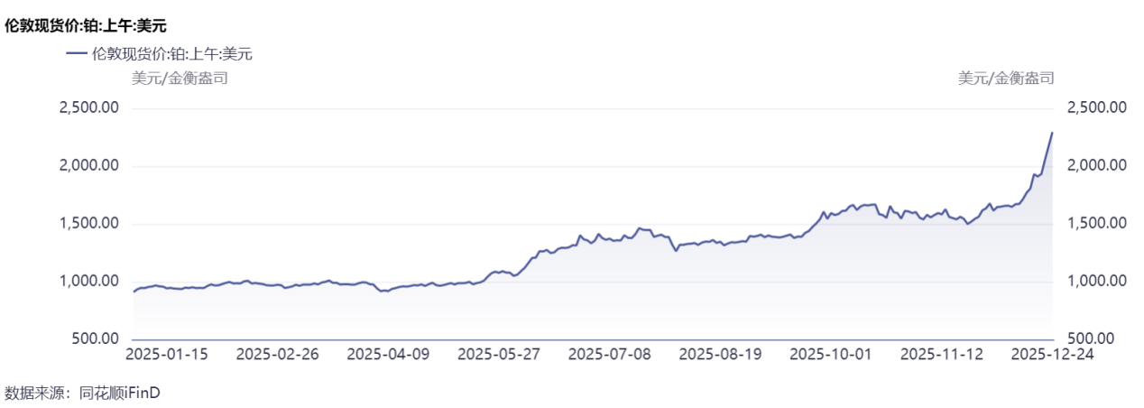 2025年,贵金属板块呈现普涨行情,金、银、铂、钯集体大涨。
