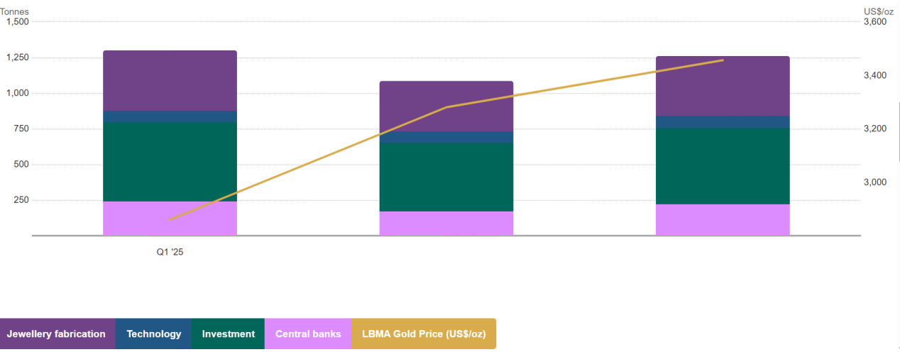 2025年,受全球央行购金潮、地缘政治避险、美联储降息与美元信用弱化等多重因素影响,全球黄金需求与黄金价格同步攀升。据世界黄金协会发布的数据,2025年前三季度,全球黄金需求总量增长至3717吨,增长1%。其中,全球央行净购金总量达634吨,第三季度净购金量220吨,较二季度增长28%,较上年同比增长10%,表明金价的持续上行并未中断各国央行的持续购金行动。