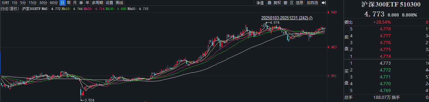12月30日,华泰柏瑞沪深300ETF凭借4251.56亿元这一规模数据,继续稳坐内地ETF规模“第一把交椅”。