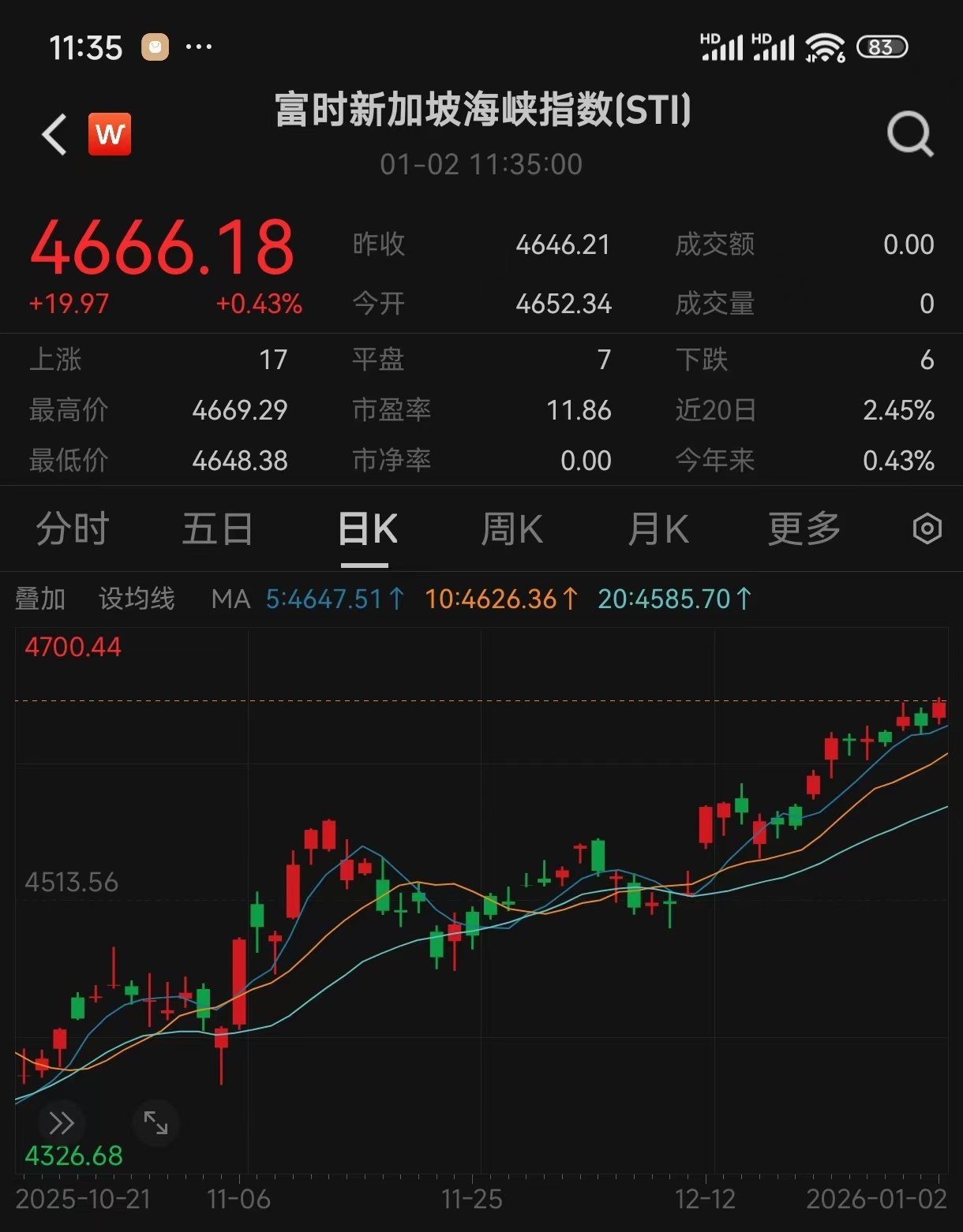 1月2日,新加坡基准股指上涨0.5%,创下4,669.29点的历史新高。