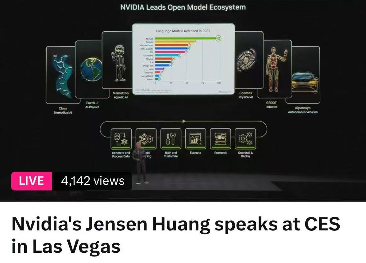 2026年1月6日至9日,全球消费电子展(CES)在拉斯维加斯举行。英伟达(NVIDIA)CEO黄仁勋在北京时间1月6日凌晨5点发表主题演讲,介绍 NVIDIA 解决方案如何驱动汽车、游戏、内容创作、智能体AI、物理AI与机器人技术领域的创新发展等。Creative Strategists的分析师表示,黄仁勋在CES 2026的演讲展示了英伟达如何从仅仅提供GPU演变为“全面的AI系统架构师,涵盖计算、网络、内存层次结构、存储和软件编排”。即使超大规模企业将资金投入定制硅芯片,英伟达紧密集成的平台“越来越难以取代”。