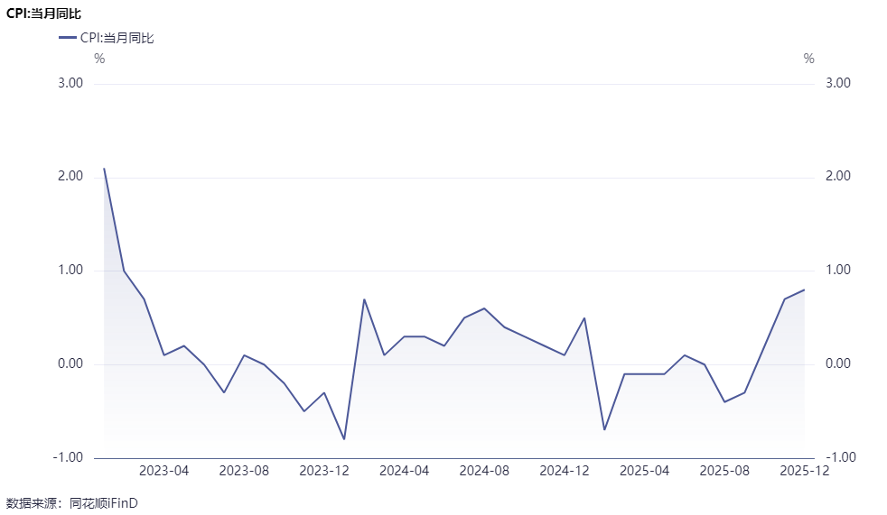 2025年12月CPI同比上涨0.8% 创2023年2月来新高